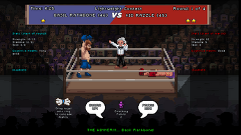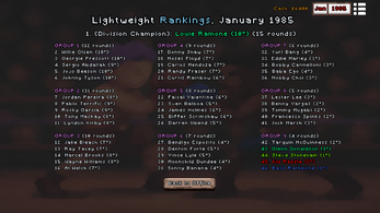 This sequel retains many of the features of the original game but I've added more interaction during the matches, plus more gyms, the Shop, more choice of opponents, a refined Popularity system, full ranking table, a referee and entrance music.